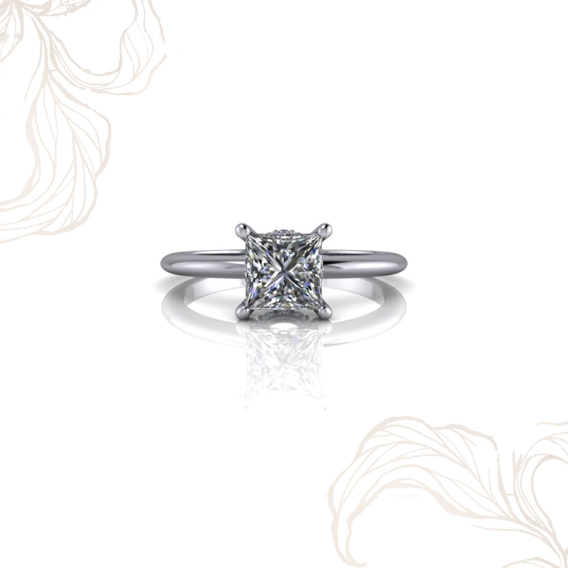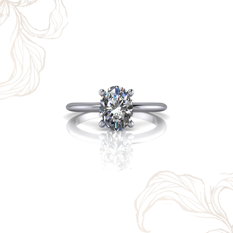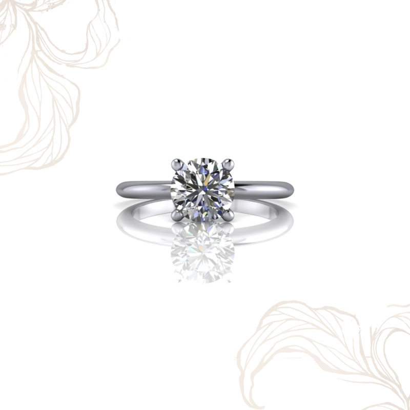 Çiğdem yüzüğünün ince beyaz altın bandı, tasarımın en bilinçli seçimlerinden biridir. İnce bir band parmağı uzun ve zarif gösterirken pırlantanın tüm odak noktası olmasına izin verir. Hiçbir şey taşın önüne geçmez. 4 pençeli klasik montür ise pırlantanın her yönden maksimum ışık almasını sağlar; bu da taşın parlaklığını ve yangın etkisini en üst düzeye taşır.
