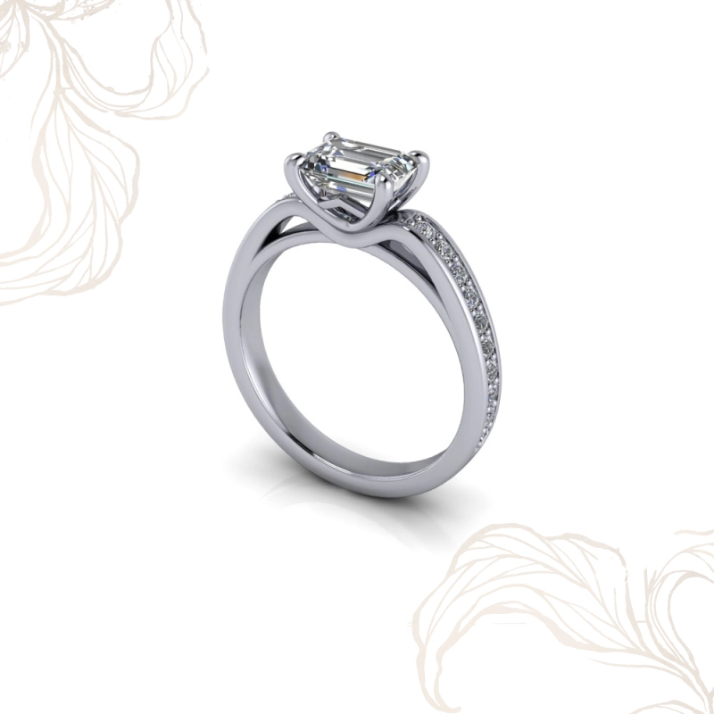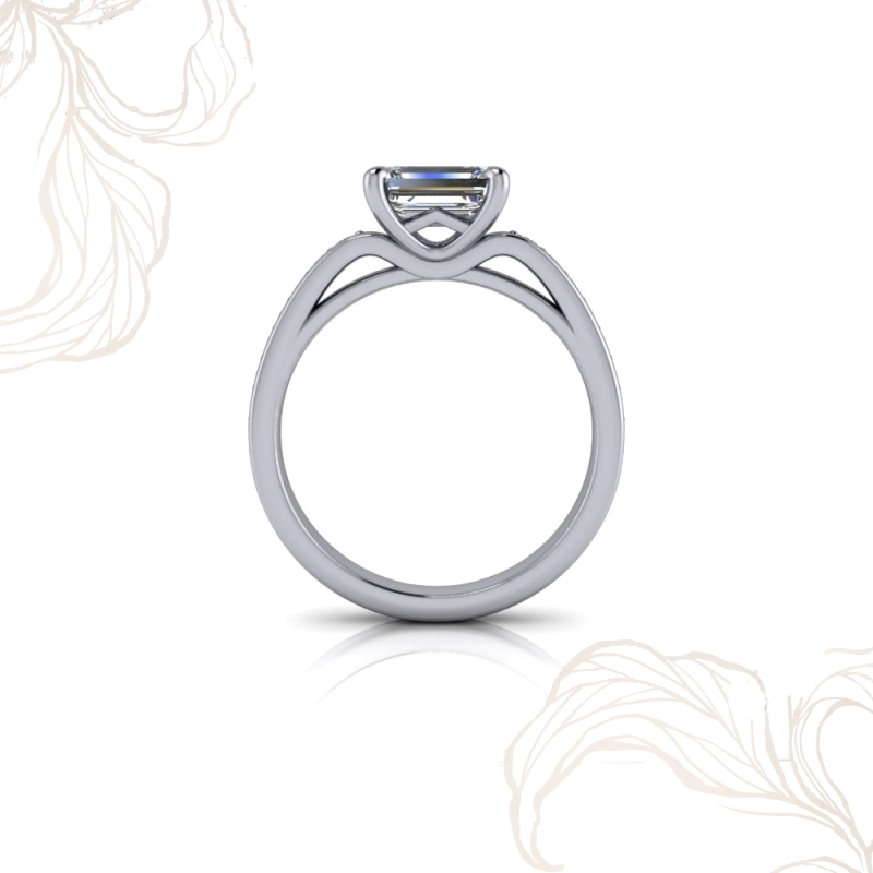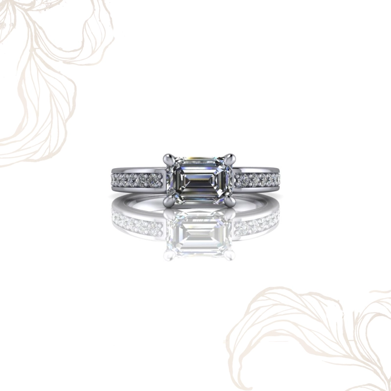 Zümrüt kesim pırlanta, diğer kesimlerden farklı bir dil konuşur. Basamaklı fasetleri aracılığıyla ışığı kırmak yerine yansıtan bu kesim, derin ve cam gibi berrak bir görüntü yaratır. Gösteriş yapmadan etki bırakan, bilenlere hitap eden bu kesim; özellikle mücevher dünyasını yakından takip eden, minimalist ama sofistike bir tarza sahip kişilerin tercihi olmuştur. Zümrüt kesim pırlanta tektaş yüzük arayanlar için Erguvan, o özgün berraklığı kanal set bandın disipliniyle bir araya getirir.