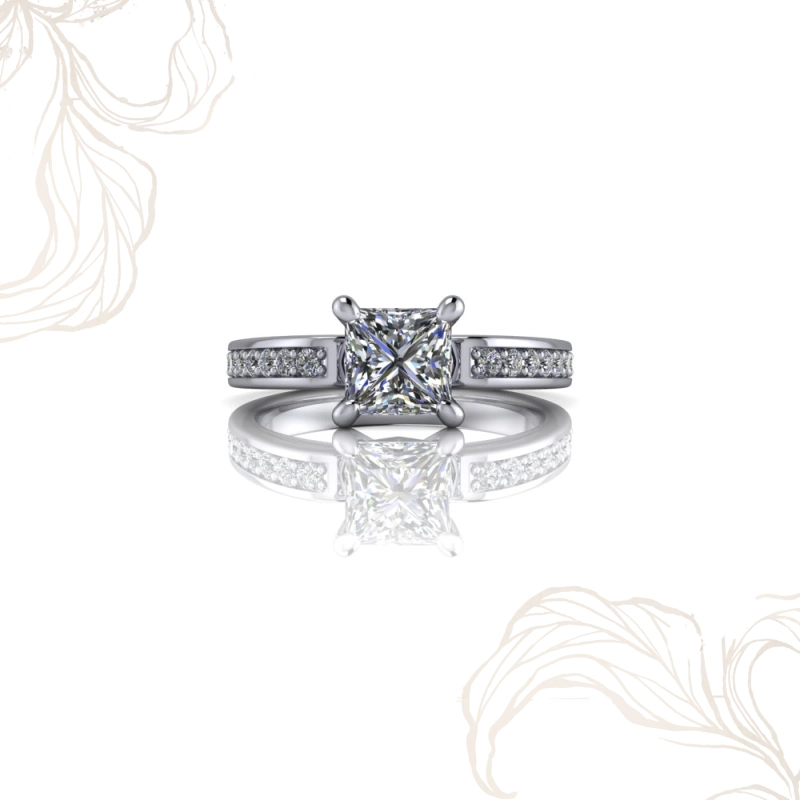 Prenses kesim pırlanta, kare formun keskin köşeleri ve ateşli ışık oyunuyla güçlü bir kişilik taşır. Yuvarlak kesimden sonra en fazla ışık kıran kesim olan prenses, modern ve kararlı bir estetik arayanlar için ideal seçimdir. Erguvan’ın kanal set bandıyla buluştuğunda geometrik güzelliği doruk noktasına ulaşır; kare taşın köşeli yapısı ile bandın düzenli çizgisi mükemmel bir uyum yakalar. Prenses kesim pırlanta tektaş yüzük arayanlar için Erguvan, hem gösterişli hem de zamansız bir seçenektir.